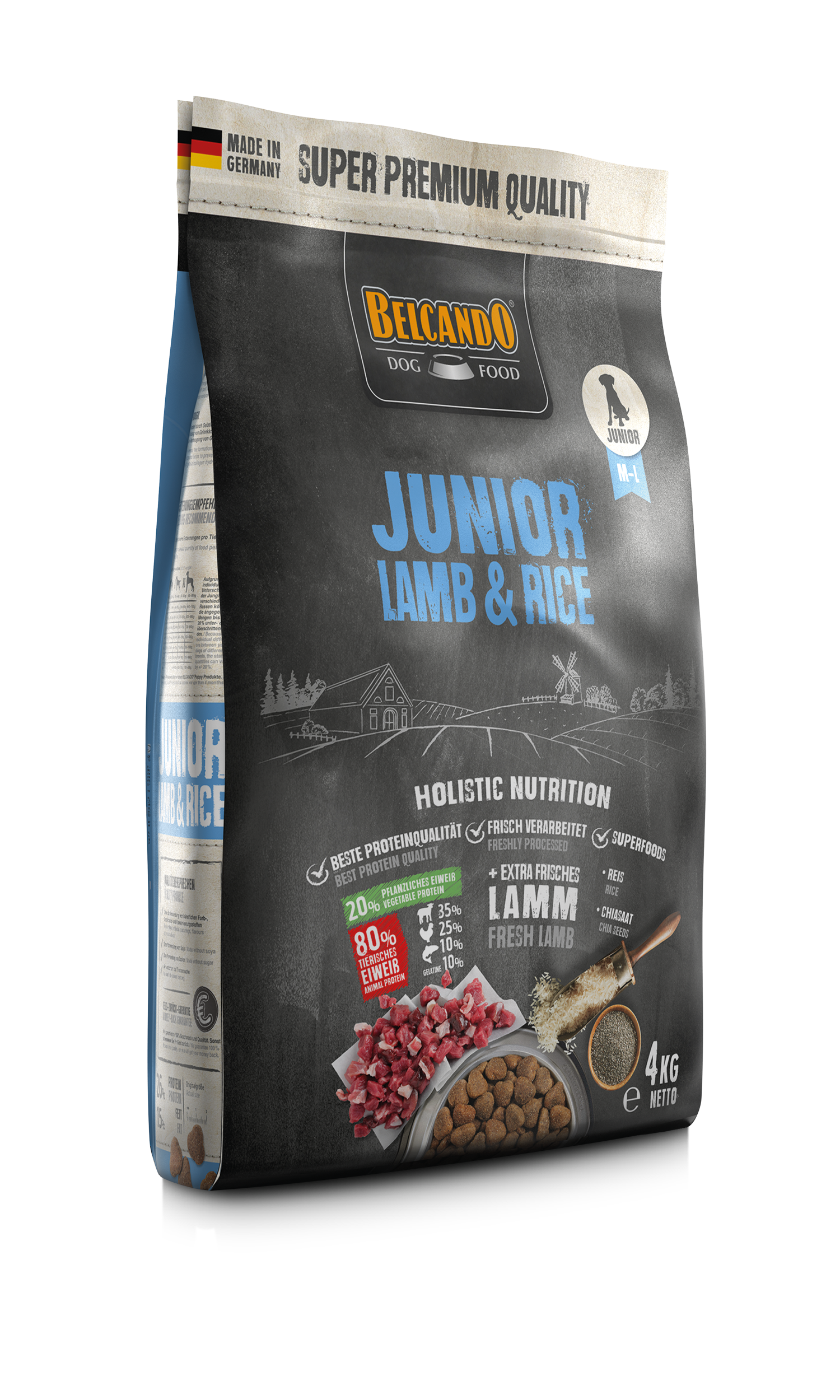 Carefully selected ingredients with a well-balanced energy and mineral ratio ensure balanced growth. BELCANDO® Junior Lamb & Rice contains a lot of lamb and highly digestible rice, making it particularly suitable for sensitive young dogs. Healthy chia seeds improve digestion and are an effective source of essential fatty acids.