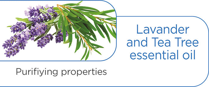 Ingredients: purified water, castor oil, glycerin, tea tree essential oil, lavender essential oil.