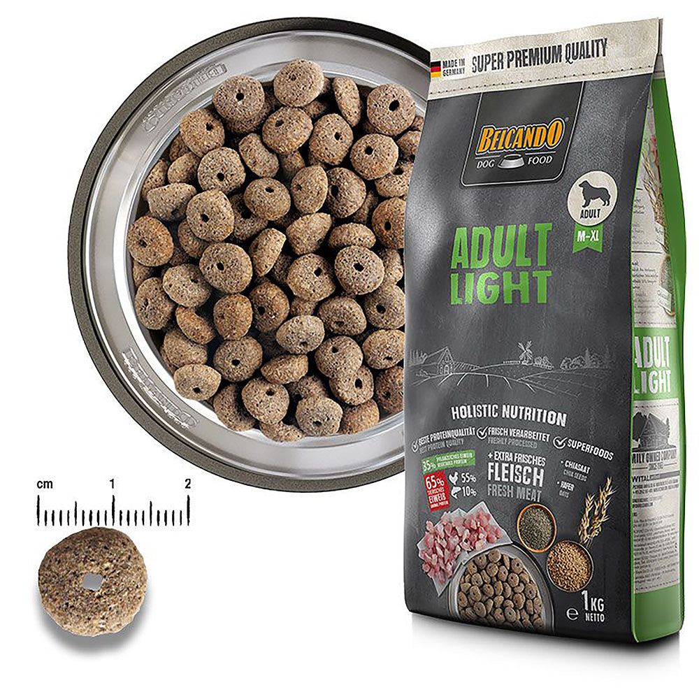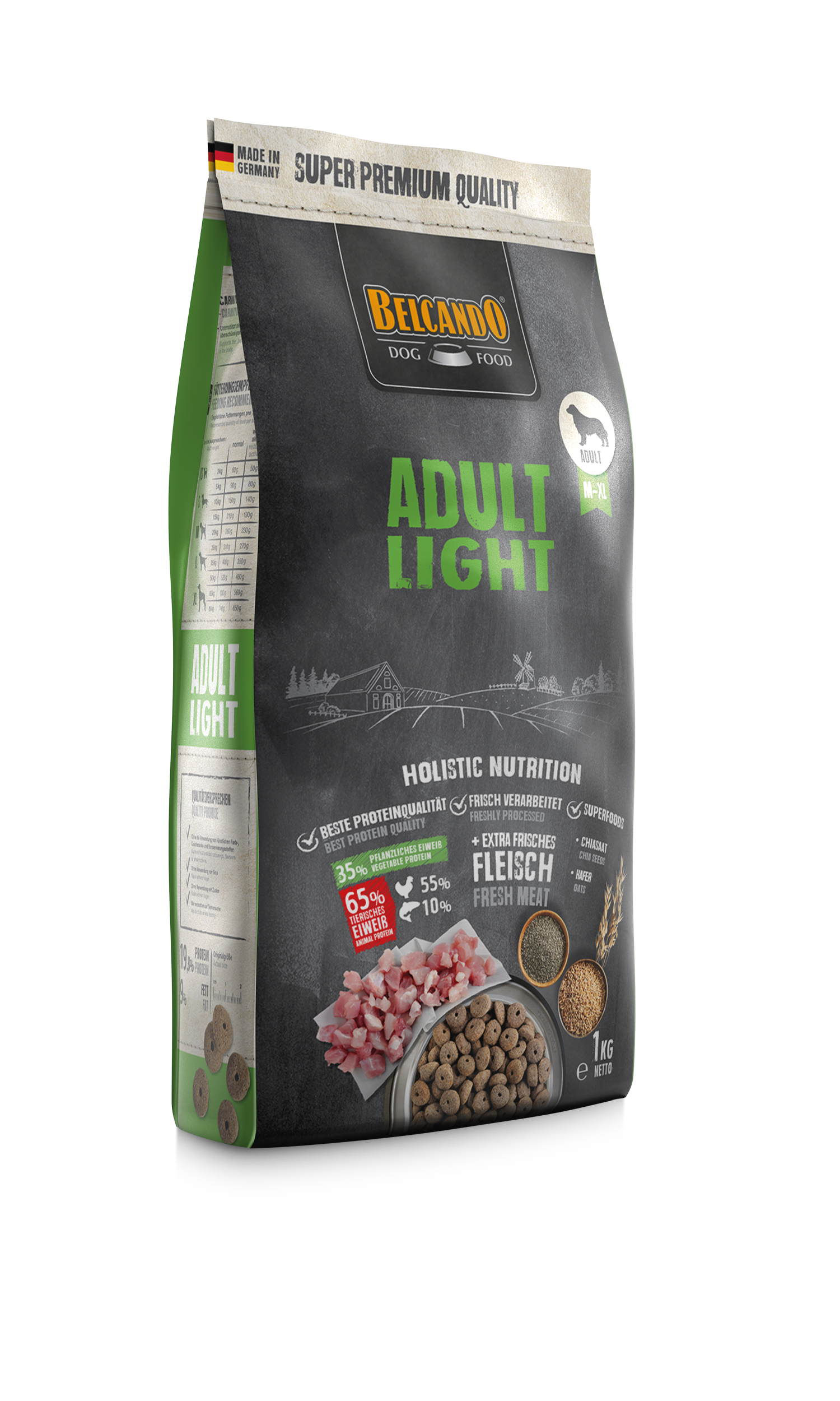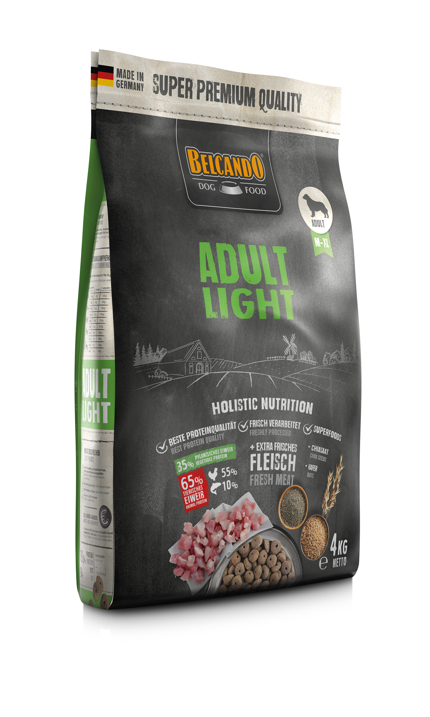 Carefully selected ingredients such as highly digestible chicken, filling oats and chia seeds make BELCANDO® Adult Light a good and healthy choice for overweight and inactive dogs. The reduced protein and fat levels make it ideal for these dogs. The high amount of dietary fiber keeps the dog full and helps to reduce or maintain weight. The L-carnitine contained in the meat helps the body burn fat effectively.