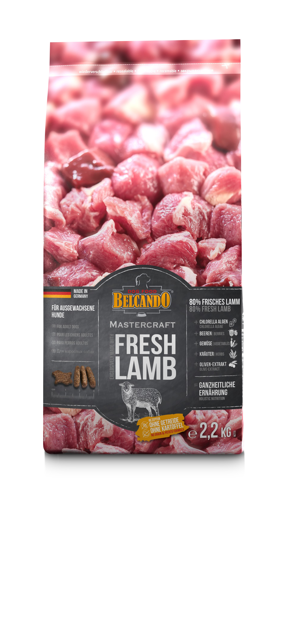 BELCANDO® MASTERCRAFT is made with only fresh meat. This means that no dried meat is used, which is used in even the highest quality foods. We have reached a completely new level of quality in dry food, a level that was previously thought impossible.