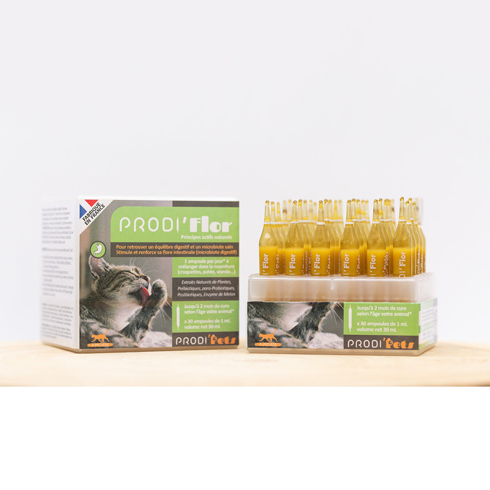 Does your cat suffer from digestive problems (diarrhea, constipation, intestinal gas). Has a medication just finished? Do you want to strengthen your pet's immunity or make a successful dietary change? Prodi'Flor helps balance digestion and find an optimal and healthy intestinal microflora.