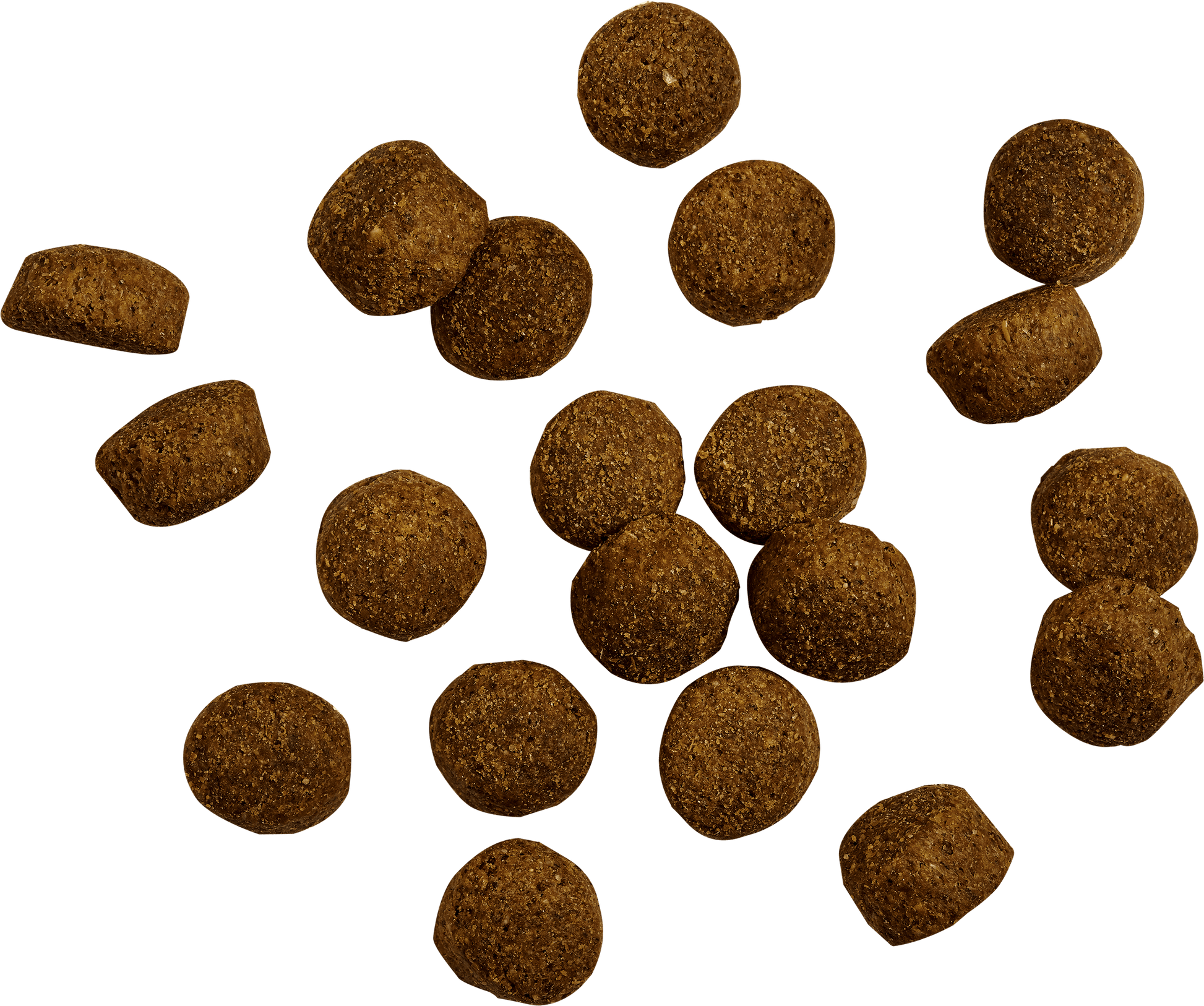 COMPOSITION: Potato starch; Poultry protein, dried (15%); pea flour; bean flour (Vicia saba); beef protein (8%); poultry fat; chickpeas; dried beet pulp, sugar-free; brewer's yeast, dried, inactivated (2.5%); carob, dried (2.5%); fish meal from sea fish; Salmon oil (1.5%); dicalcium phosphate; linseed (1%); hydrolyzed poultry liver; sodium chloride; potassium chloride; dried herbs (total 0.2%; nettle leaves, bitter root, gall, chamomile, fennel, caraway, mistletoe, yarrow, blackberry); Yucca schidigera CERTIFICATE OF ASSURANCE Protein 24%, fat 14%, crude ash 6.8%, crude fiber 2.5%, moisture 10%, calcium 1.3%, phosphorus 0.9%, sodium 0.3% ADDED NUTRIENTS/KG Nutritional additives: Vitamin A 13,000 IU; vitamin D3 1,300 IU; vitamin E 130mg; taurine 500mg; copper (copper(II) sulfate, pentahydrate) 12.5mg; iron (ferrous(II) sulfate, monohydrate) 200mg; manganese-(II)-oxide 40mg; zinc (zinc oxide) 125mg; iodine (calcium iodate) 2mg; selenium (sodium selenite) 0.05mg. Technological additives: Tocopherol extracts from vegetable oils (= natural vitamin E) 48 mg