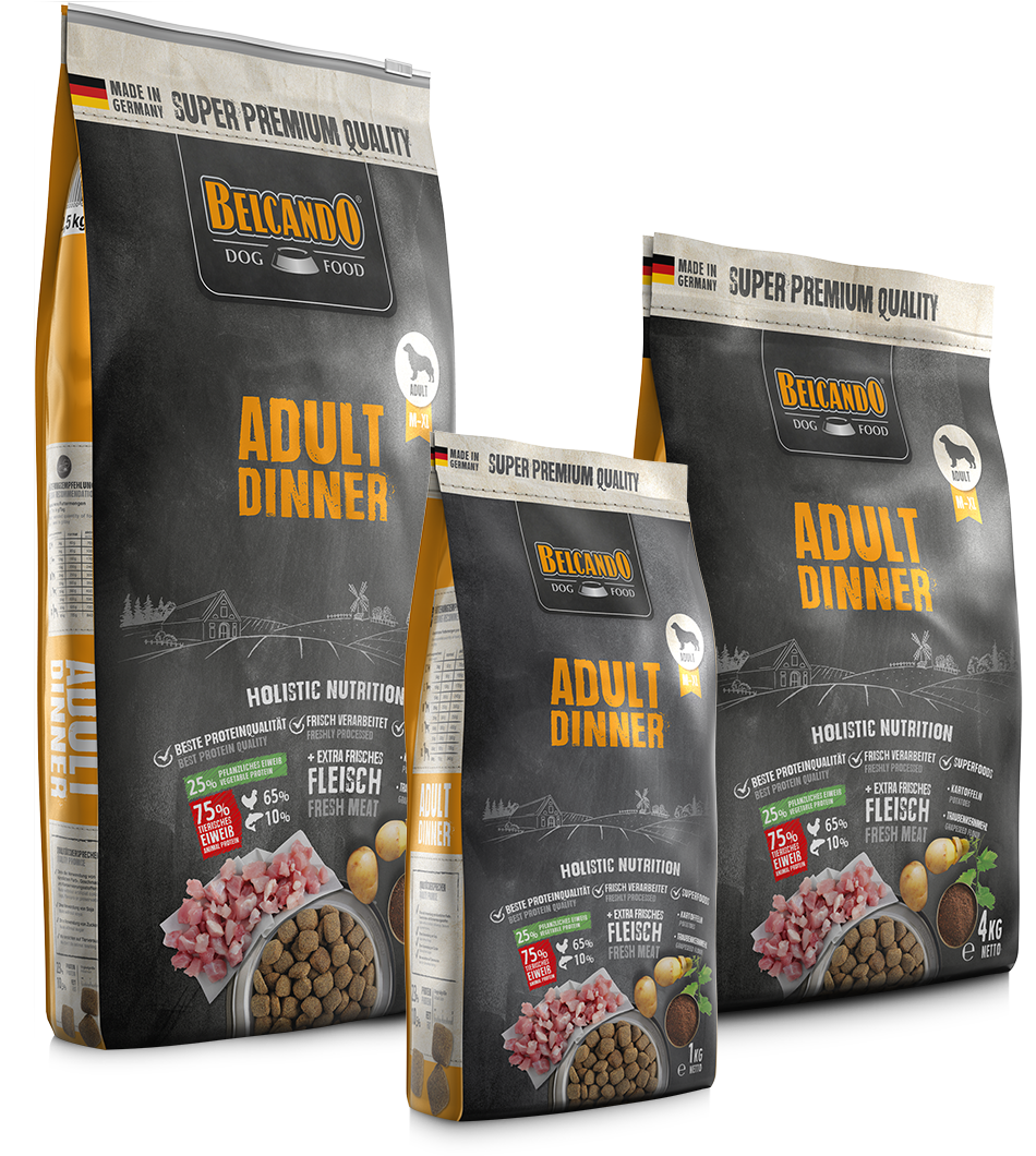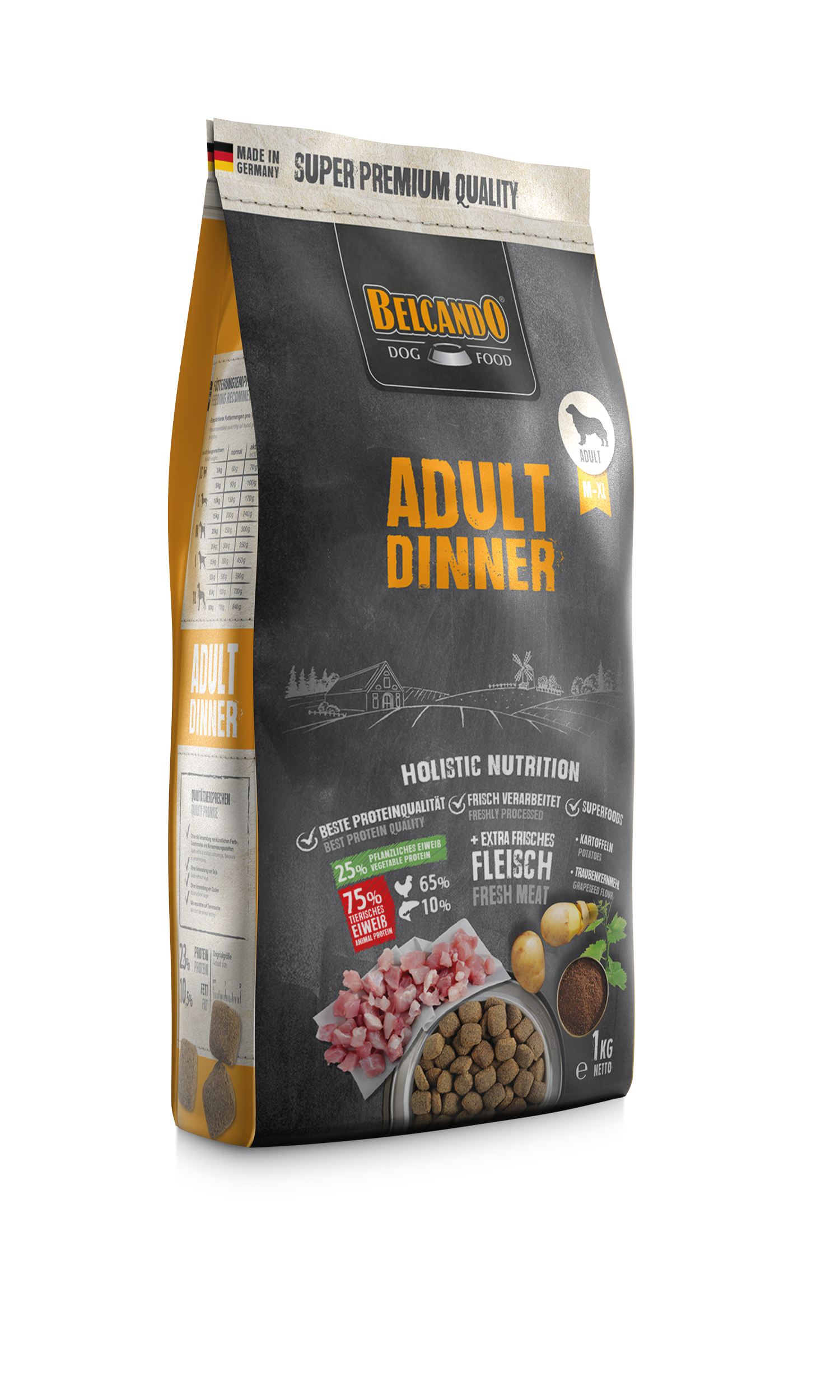 BELCANDO® Adult Dinner sisältää mm. paljon kanaa, terveellistä perunaa ja kylmäpuristettua viinirypäleensiemenjauhoa. Tämän ruoan huolella valikoidut raaka-aineet tekevät siitä erinomaisen myös herkille koirille. Rajoitettu proteiinin- ja rasvanmäärä soveltuu hyvin normaaliaktiivisille koirille. Oikea ruokintamäärä pitää koiran painon sopivana ja takaa riittävän kylläisyyden tunteen.