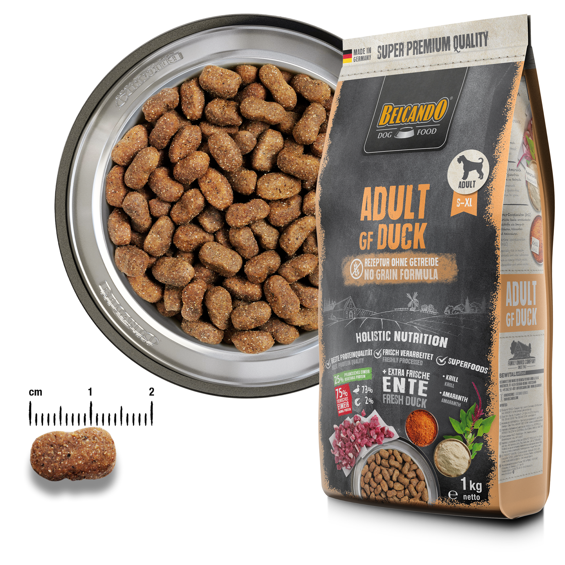 Tuore ankka (40 %); ankan proteiinia*¹ (18 %); amarantti (17 %); perunatärkkelys; hernejauho; jauhettu meriplankton (krilli)*² (2,5 %); kylmäpuristettu viinirypäleensiemenjauho; panimohiiva, inaktivoitu*¹ (2,5 %); karkeaksi rouhitut johanneksenleipäpuun palot*¹ (2,5 %); siipikarjanrasva; dikalsiumfosfaatti; chian siemen; hiivat*³; kuivattu juurikasleike*⁴; natriumkloridi; kaliumkloridi; yrtit*¹ (nokkosen lehdet, katkerojuuri, rohtosappi, kamomilla, fenkoli, kumina, misteli, siankärsämö, karhunvatukka) (0,2 %); yucca schidigera *¹kuivattu *²jauhettu *³hydrolysoitu *⁴sokeriton