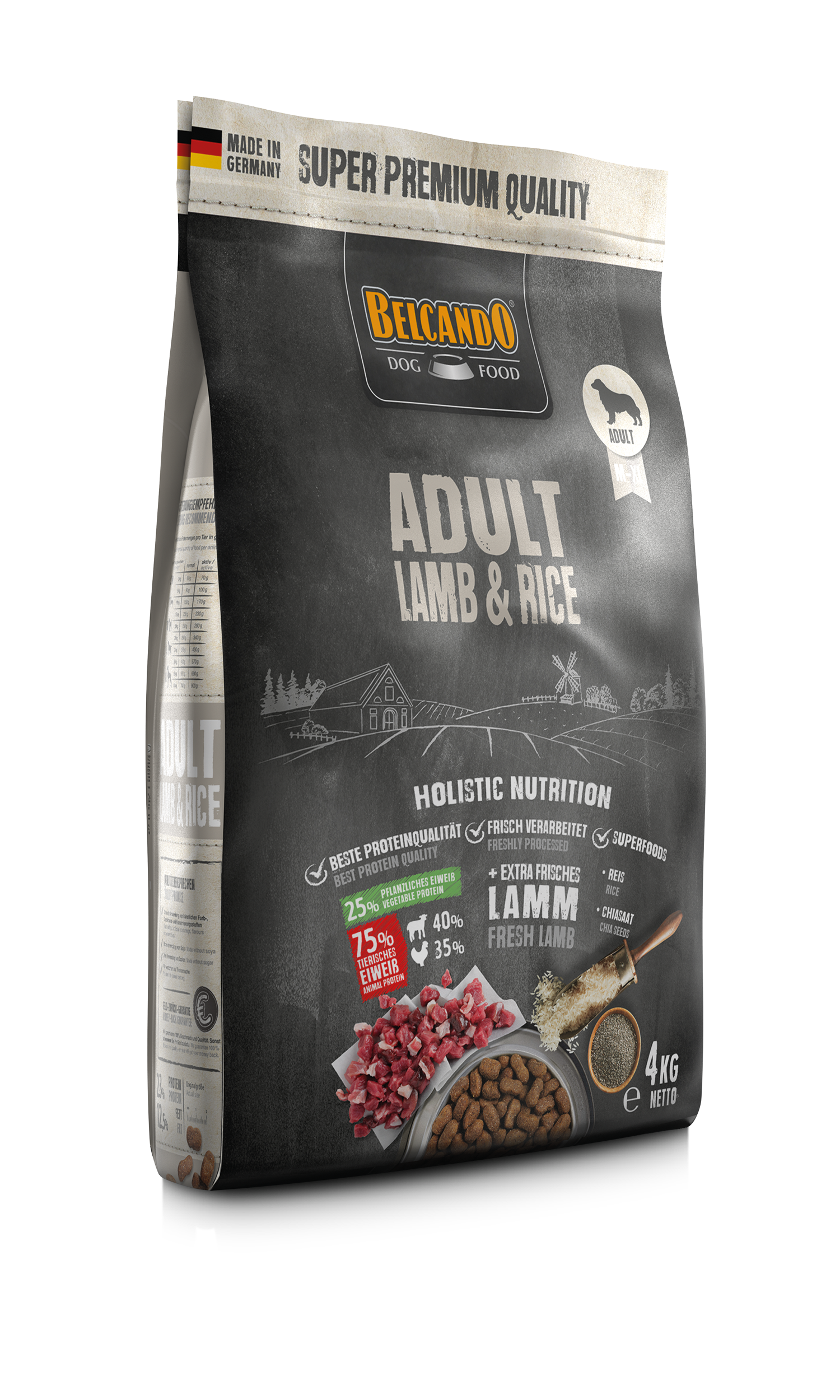 BELCANDO® Adult Lamb & Rice on erittäin hyvin sulava ja erityisen hyvin siedetty holistinen ruokavalio, joka soveltuu annettavaksi kaikkein herkimmillekin koirille. Se sisältää paljon lammasta ja hyvin sulavaa riisiä. Chian siemenet auttavat ruoansulatusta ja ovat oivallinen elintärkeiden rasvahappojen lähde. Proteiini- ja rasvasisältö on sovitettu normaaliaktiivisen koiran ravintotarvetta vastaaviksi.