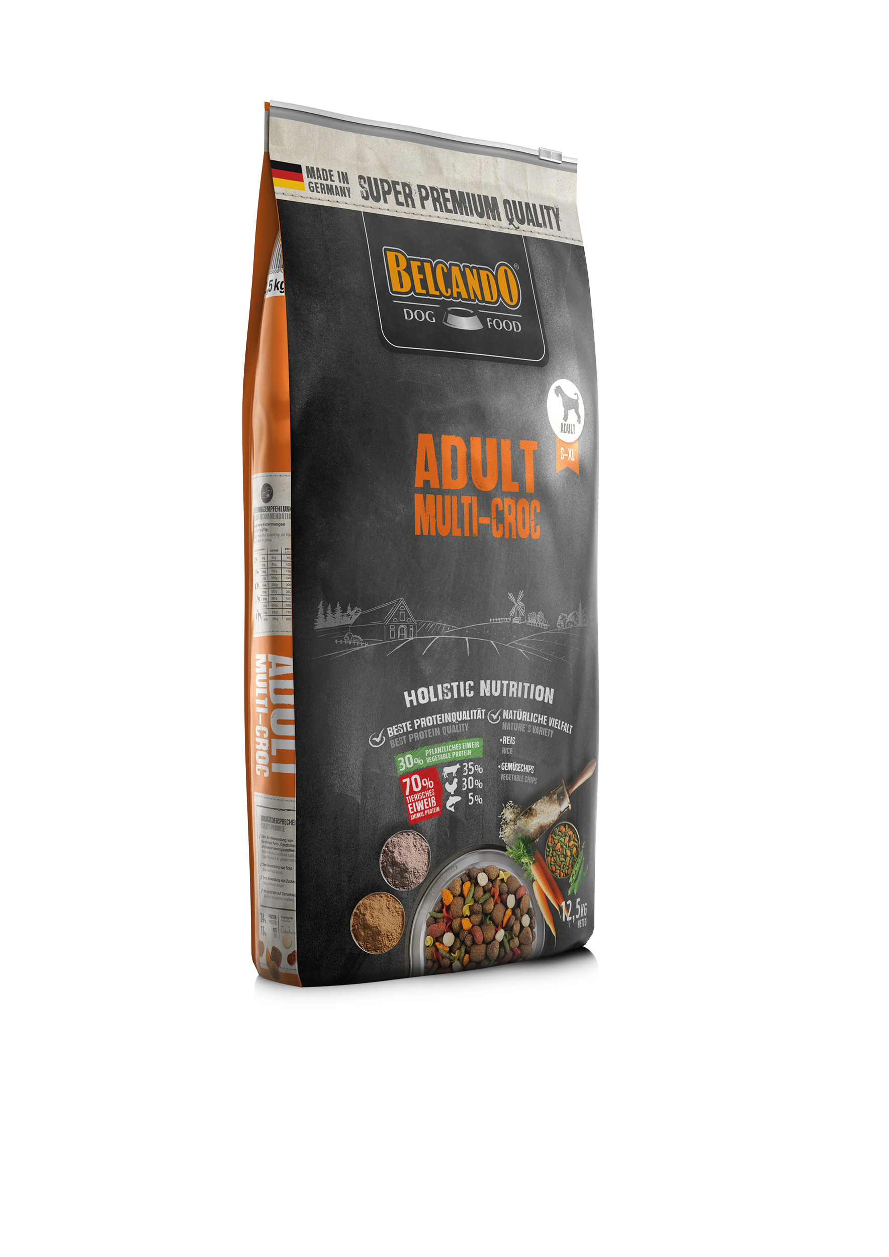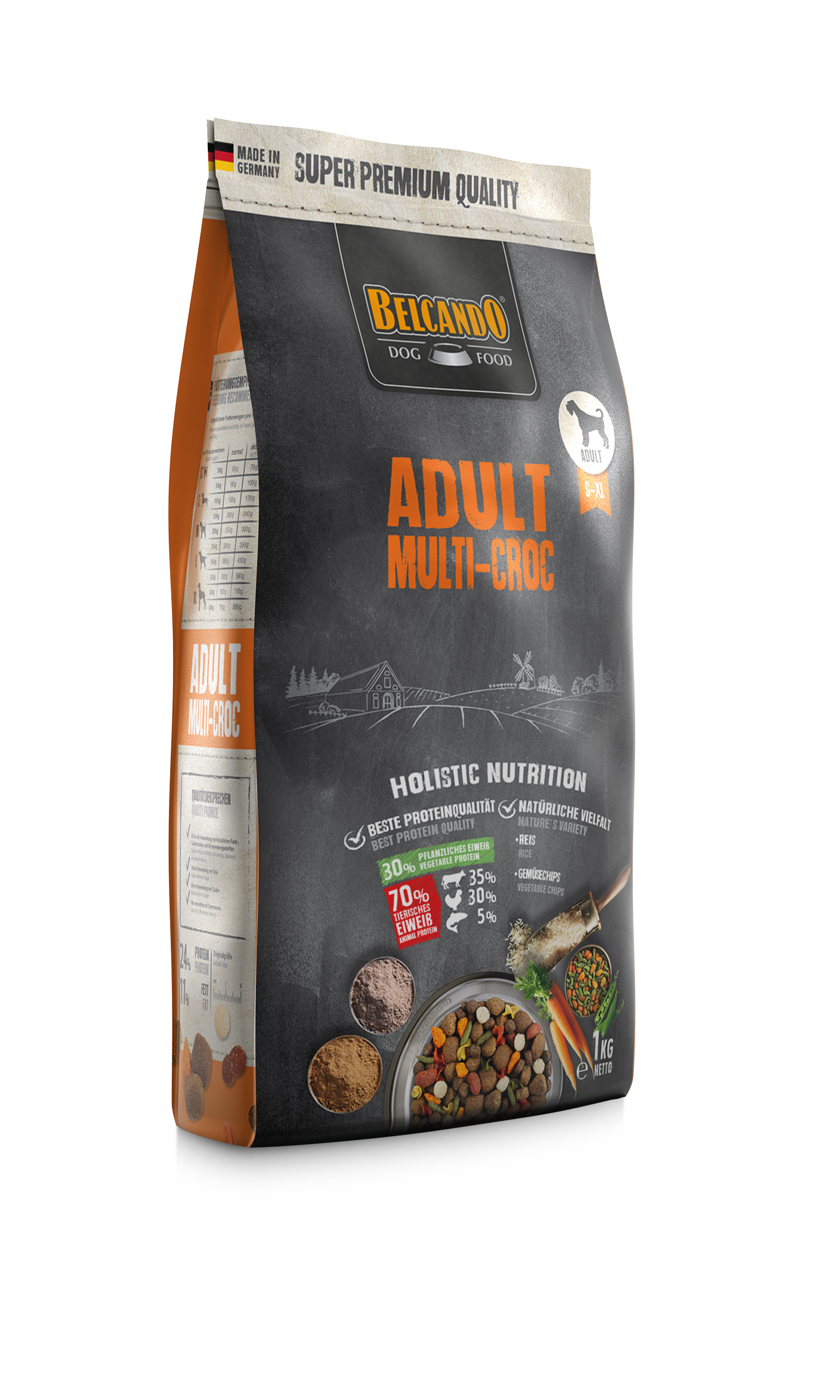 BELCANDO® Adult Multi-Croc sisältää arvokkaita raaka-aineita mm. paljon riisiä joka on erinomainen hiilihydraattilähde. Sen maukas yhdistelmä erilaisia nappuloita, kasvislastuja ja nuudeleita tekevät siitä vastustamattoman ruoan myös nirsoille koirille.