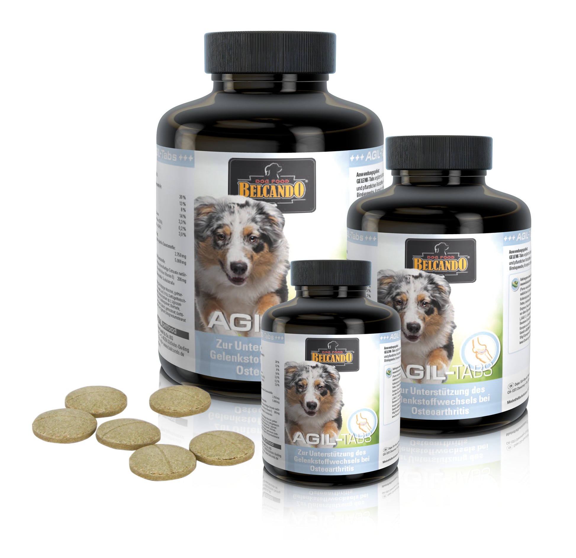AGIL-Tabs täydentää koirasi ruokavaliota äyriäisistä ja kasvipohjaisista raaka-aineista saatavilla ravintoaineilla, jotka tunnetaan sidekudosten, rustojen ja nivelten toimintaa tukevasta vaikutuksestaan.