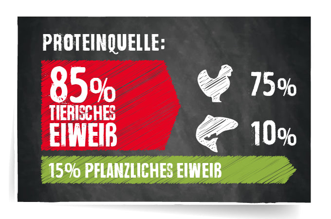 Eläinproteiinin osuus kokonaisproteiinista: 85% (siipikarjaa 75%, kalaa 10%)