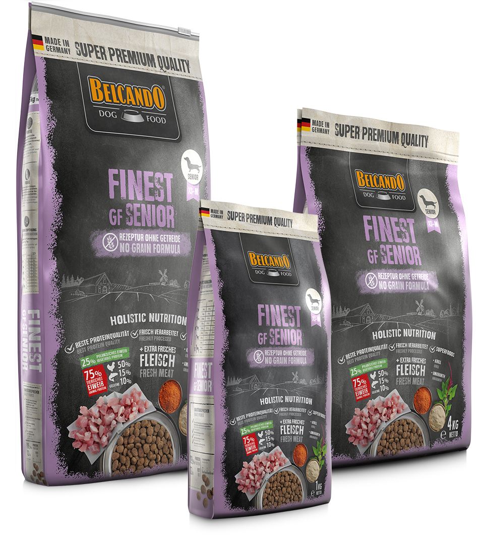 Erityisen nautittava vaihtoehto vanhemmille koirille jotka ovat herkkävatsaisia. Parhaat raaka-aineet, kuten amarantti, ravitseva krilli ja tuore siipikarja, tarjoavat nelijalkaisille ystävillemme kaiken mitä ne tarvitsevat ikääntyessään. Tämä mahdollistaa myös siirtymisen Finest GF -tuotteistamme ikään sopivaan pienten vanhojen koirien ruokavalioon ja laadukkaaseen viljattomaan reseptiin. BELCANDO® Finest GF Senior muuttuu erityisen maittavaksi kun ruokaan lisätään lämmin vesi ennen tarjoilua. Näin saadaan aikaiseksi maittava lihaliemi!