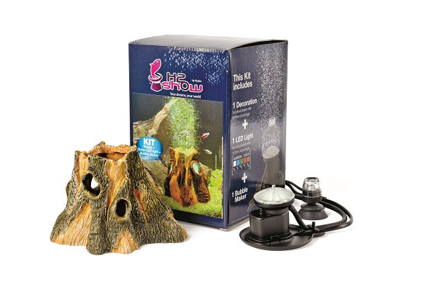 Paketti sisältää: 1 Käsintehty myrkytön hartsikoristelu kanto, joka sopii yhdistettäväksi värilliseen valoon ja kupliin upeiden tehosteiden saavuttamiseksi; 1 LED Show, erittäin turvallinen ja matalajännitteinen LED-valo, joka tuottaa värillisen valaistuksen; 1 Bubble Show, patentoitu sisäilmastimemme, joka on erityisesti suunniteltu hapen tehokkaaseen levittämiseen akvaarioissa.