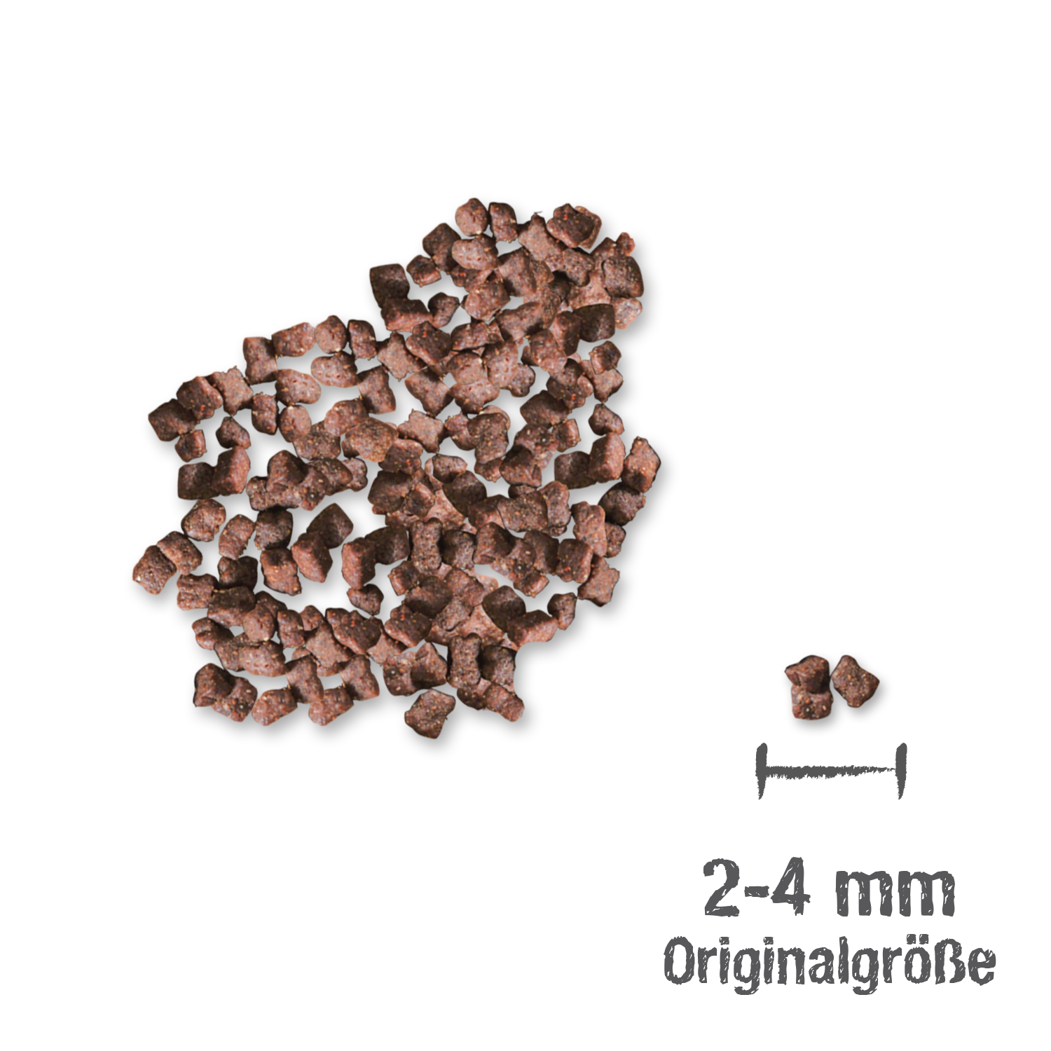 LEONARDO® Kitten Granula-Start valmistetaan erityisellä menetelmällä jolloin raekoko saadaan juuri oikeanlaiseksi. Lopputuloksena saadaan optimaalinen 2-4 mm raekoko.