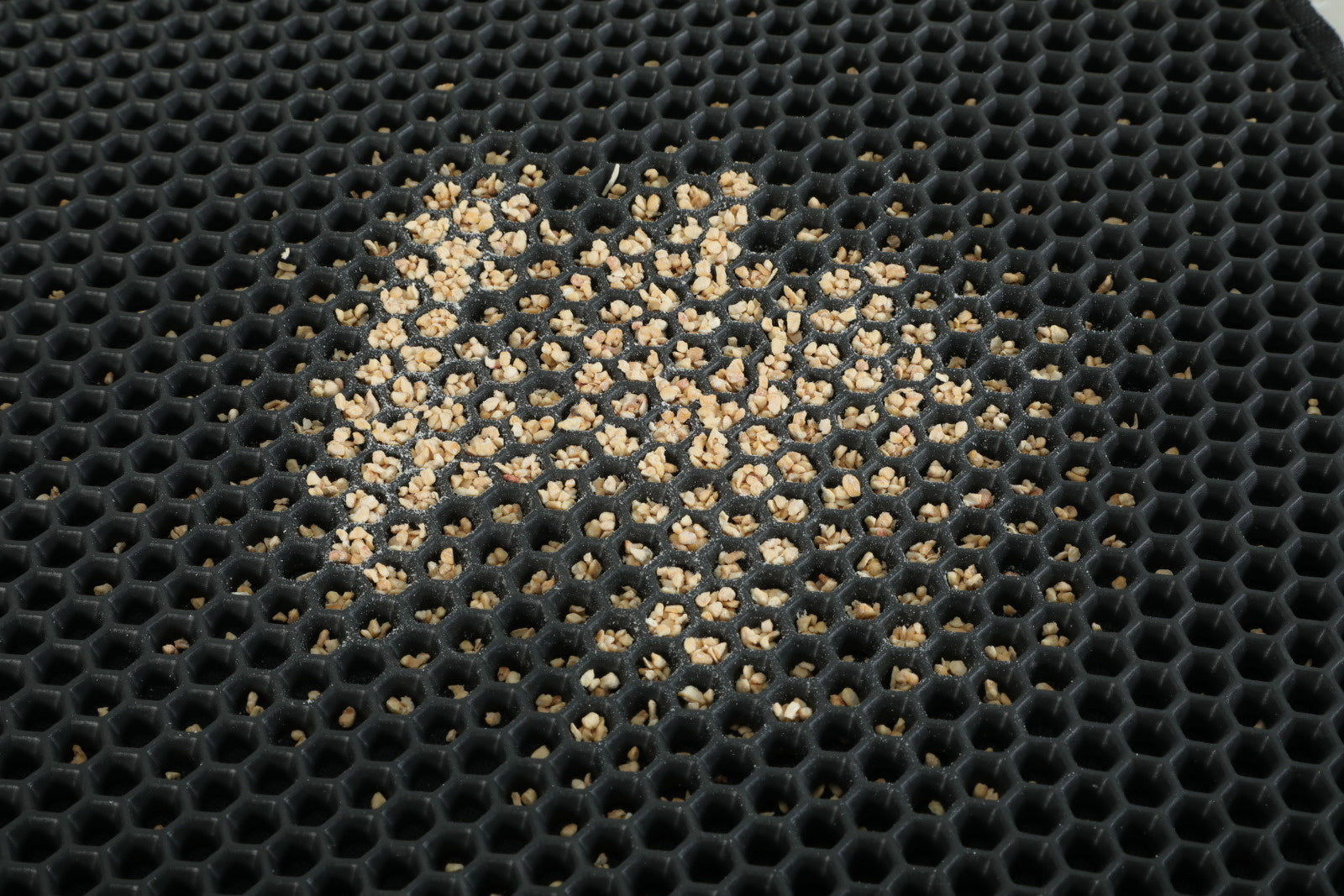 Hunajakenno -rakenne vangitsee kulkeutuvan kuivikkeen tehokkaasti. Kuvioitu vedenpitävä rakenne pitää mahdolliset nesteet matossa, suojaa lattiaa ja on helppo puhdistaa. Päälinen etyleeni vinyyli asetaatti. Pohja oxford kangas.
