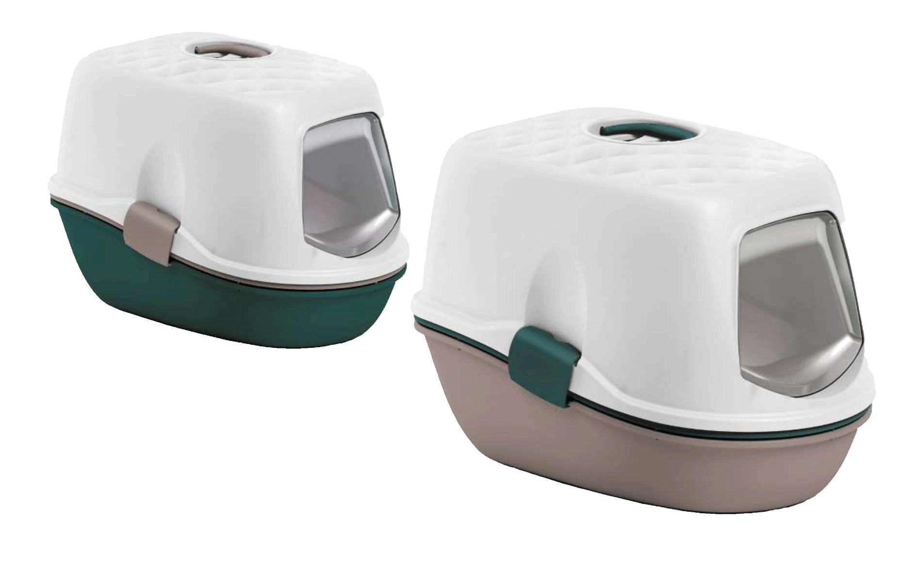 3 osainen vessa ritilällä ja ja kannella. Säästää hiekkaa ja helppo puhdistaa