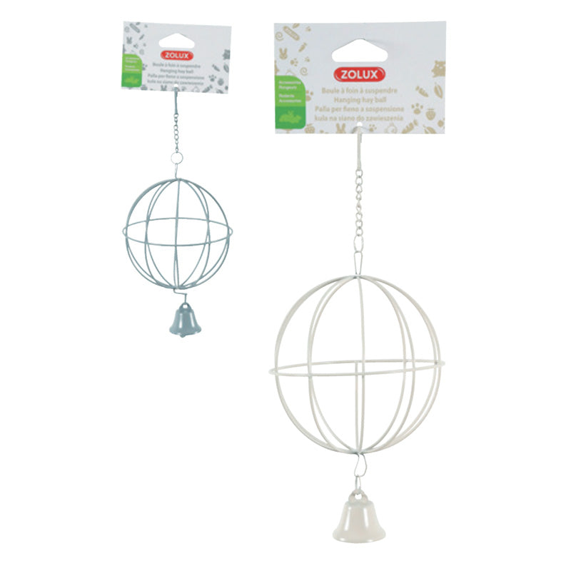 Ripustettava metallinen heinäpallo kellolla, harmaa 110*110*270mm